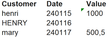 To make this concrete, let's look at the exact data Corben is dealing with. It’s a small sample, but it represents the chaos of real-world reporting. We have three columns: Customer, Date, and Value.